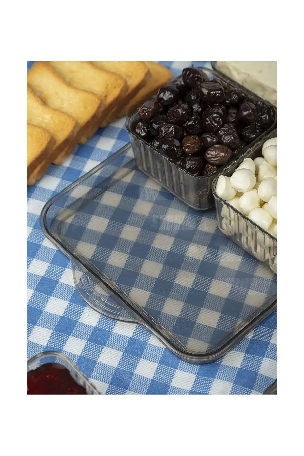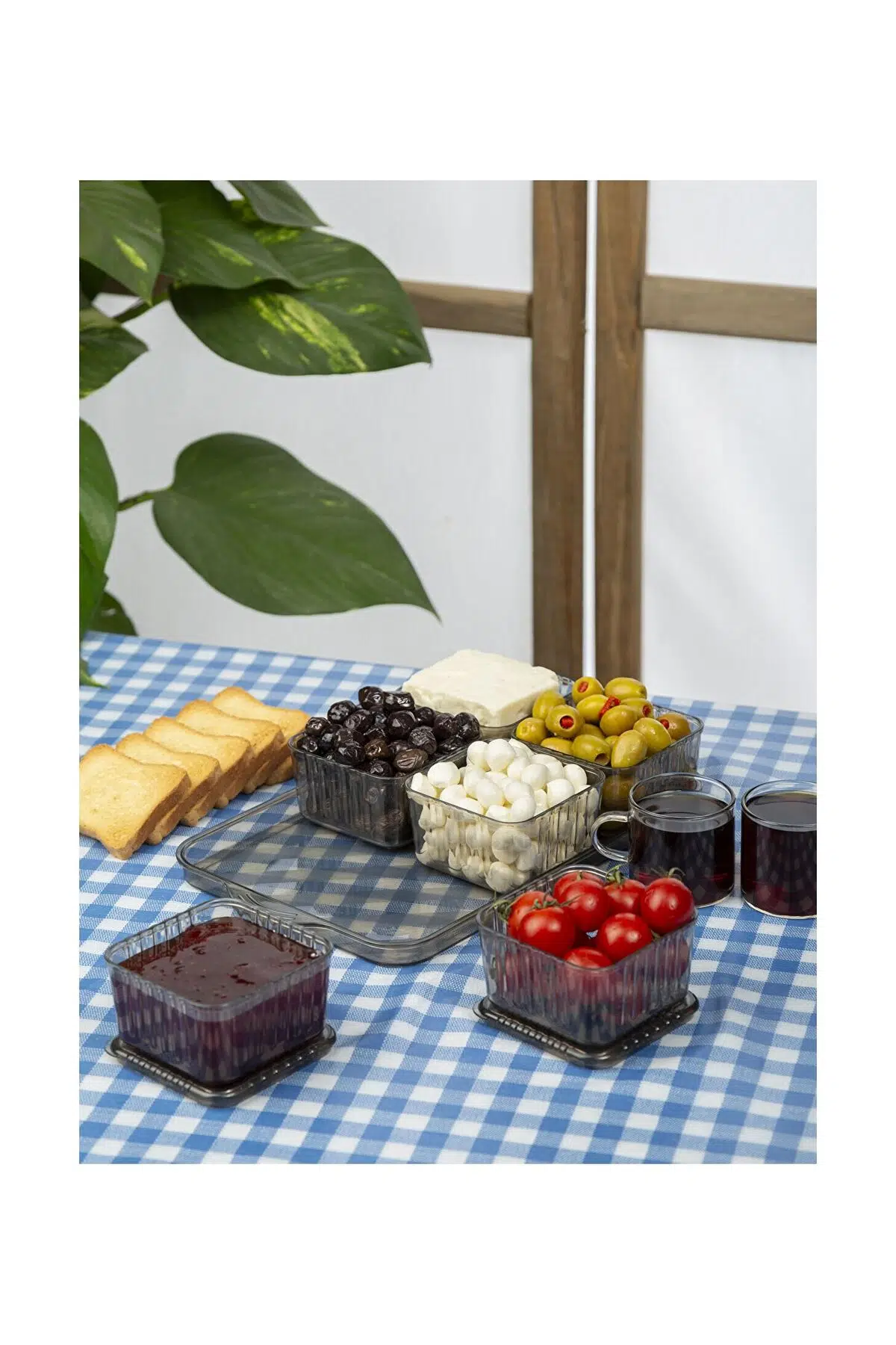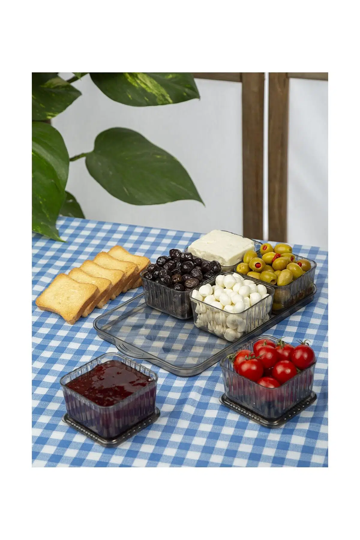 Antrasit Tepsili Lüx 13 Parça 6 Bölmeli Kahvaltılık Seti Kapaklı Tepsili Kahvaltı Sunum Takımı