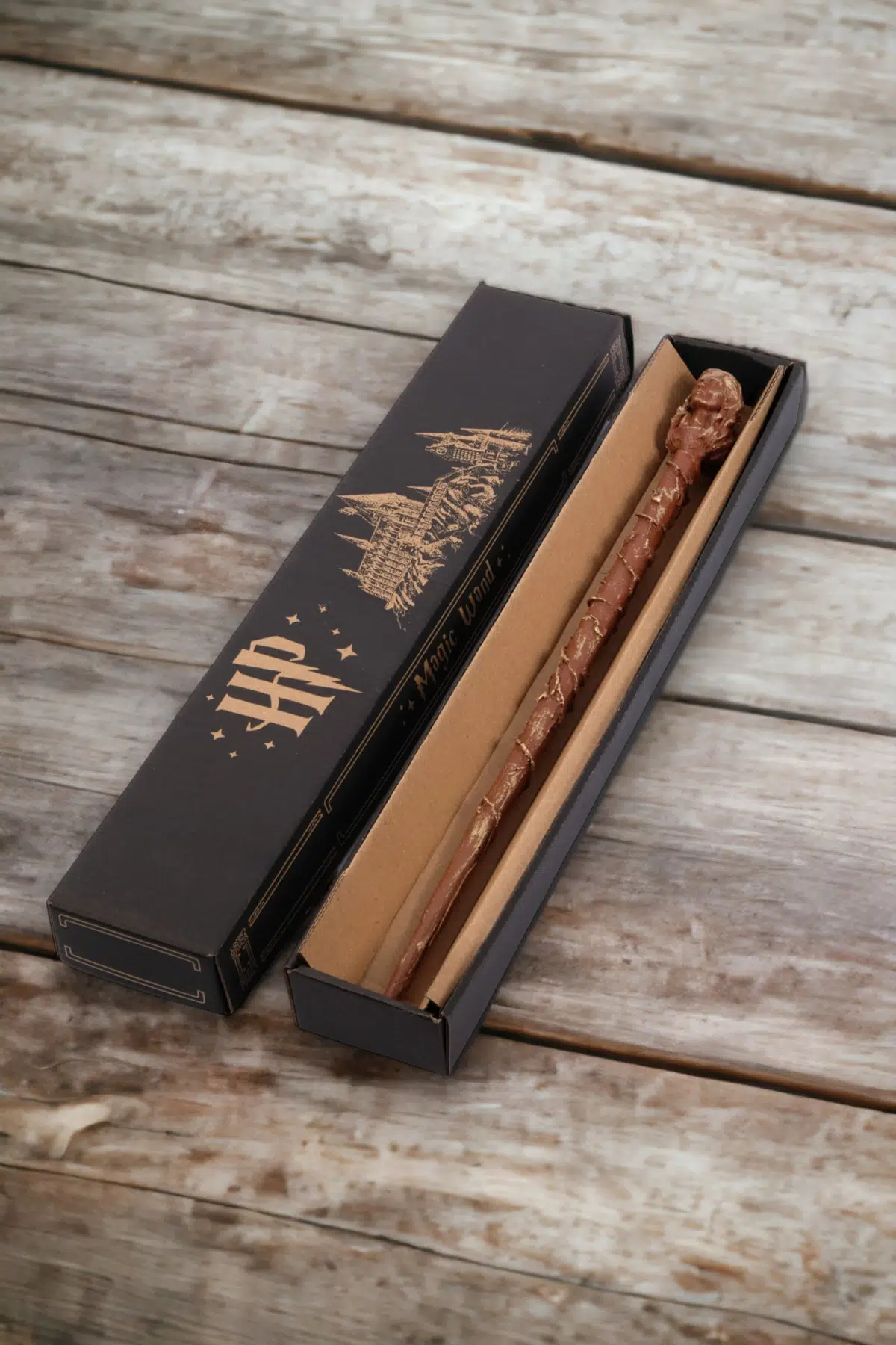 Genç Harry Potter hayranları için ideal bir hediye seçeneği olan bu asa, 33 cm uzunluğunda ve gerçekçi bir tasarıma sahip; Kahverengi; altın yaldız detaylarıyla süslenmiş bu asa, Hogwarts'ın büyülü dünyasını evinize taşıyor; Kutulu ambalajı ile gelen bu asa, Harry Potter konseptli hediyeler arasında özel bir yere sahip;